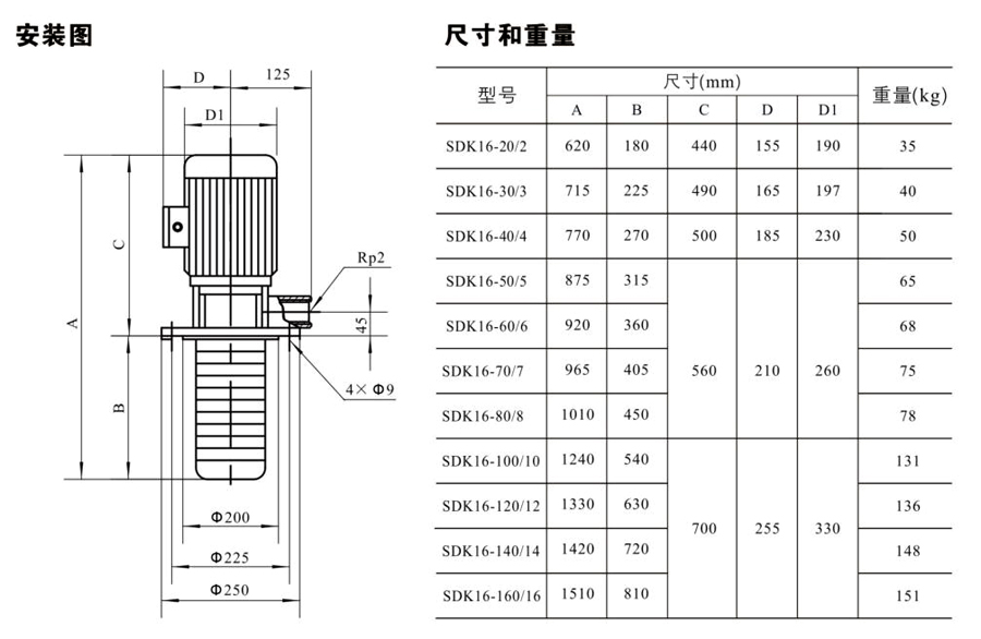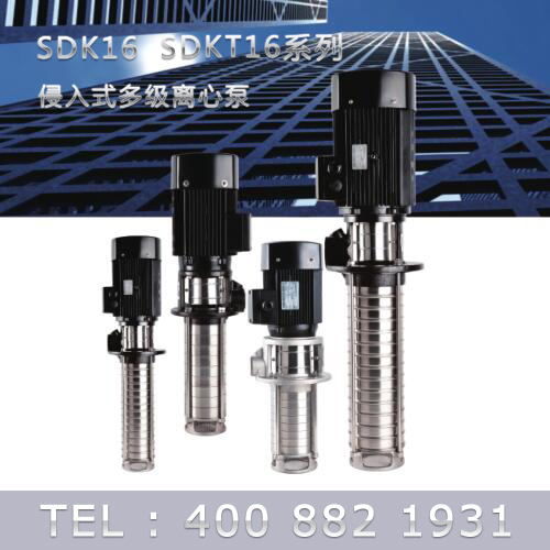 SDK16/SDKT16為配用標(biāo)準(zhǔn)電機的非自吸立式多級離心泵,電機軸和泵軸用聯(lián)軸器直接聯(lián)接的結(jié)構(gòu)。為滿足水槽或容器的安裝深度,可安裝空套的腔體來改變泵本身的侵入 深度。