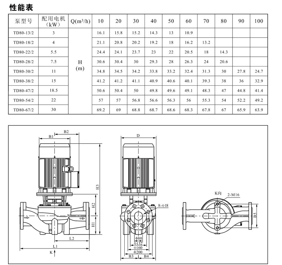 TD80系列單級管道離心泵,配有標準電 機和機械密封。此類產(chǎn)品的結(jié)構(gòu)與相近類型產(chǎn)品相比,更不易受到泵送液體中雜質(zhì)的影響。產(chǎn)品設(shè)計為頂部可拉出的拆裝形式,其可 以在不影響管路系統(tǒng)的情況下對泵進行維修。所有泵采用創(chuàng)新式便拆式機械密封,更好機械密封無需拆卸電機。